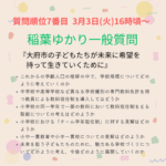 3月にはいりました。あっという間に過ぎた2月でした。2月は3月議会に向けて、一般質問の準備をしたり、予算審査の準備をしたりと、毎日なんだか落ち着かない日々でした。今回の一般質問は学校教育について行います。 予算審査は気に […]