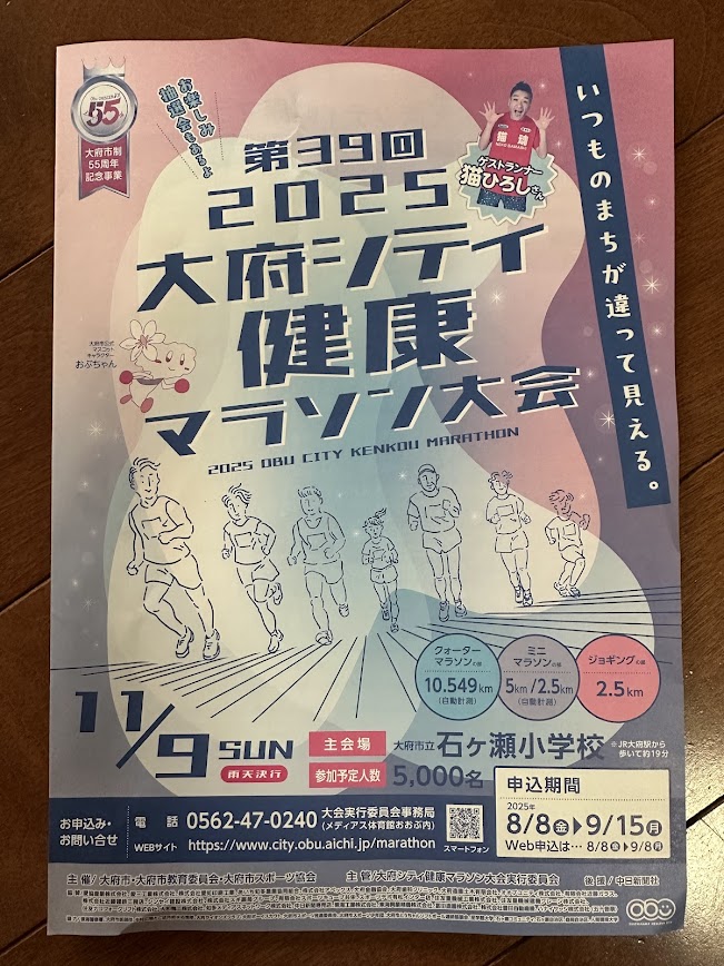 今年の大府シティマラソン大会は、2025年11月9日(日曜日)です。