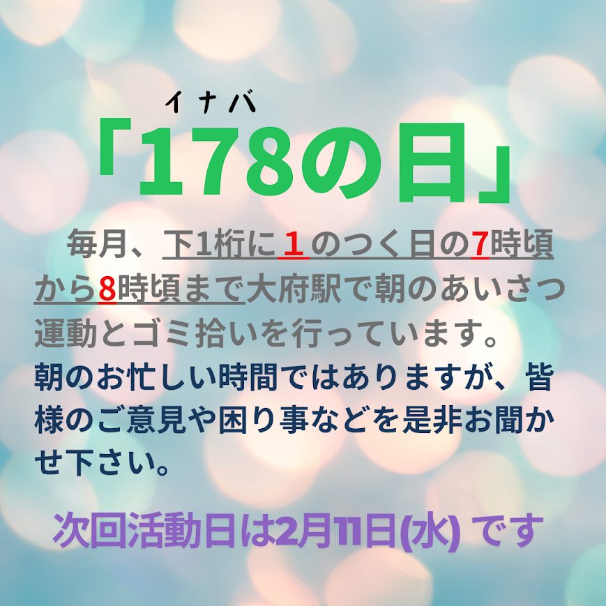 次回は衆院選のお邪魔にならないよう選挙が終わった後、2/11に「178の日」を実施予定です。